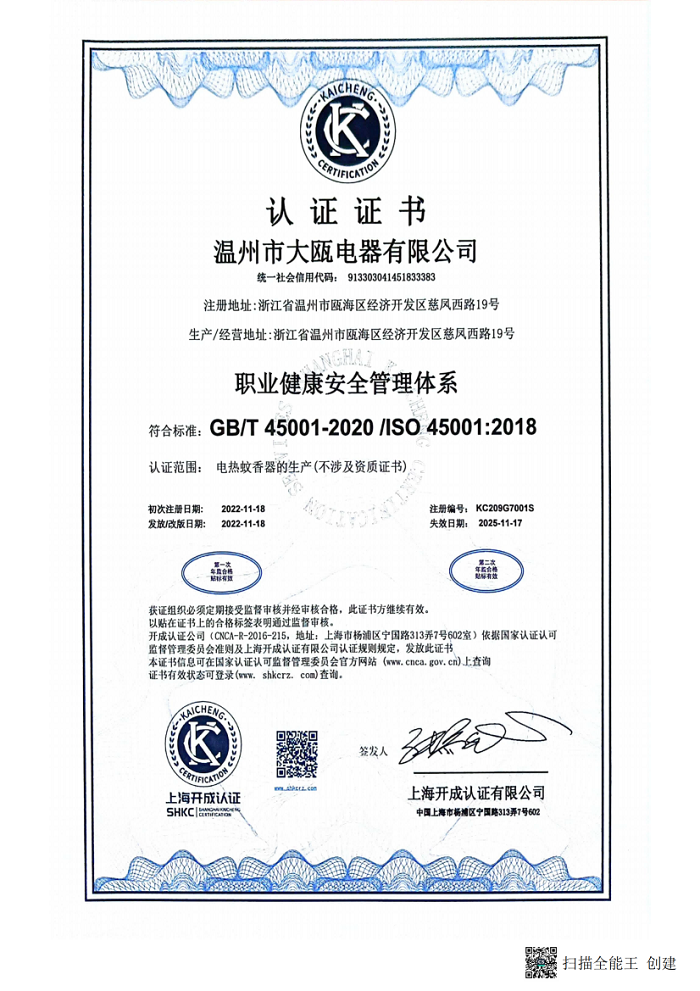 溫州市大甌電器有限公司(以下簡稱大甌公司)是集研發、制造為一體的日化電器專業生產制造商。 秉承“以人為本,以質取勝”的經營理念,三十余載櫛風沐雨,踐行“成就客戶、價值為本、誠信務實、追求卓越”的核心價值觀。大甌公司堅持以產研一體化的經營模式與差異化的競爭戰略為基點,持續推出細分市場上的多種類產品,豐富產品矩陣,滿足消費者多樣化需求,助力新型驅蚊行業高速發展。